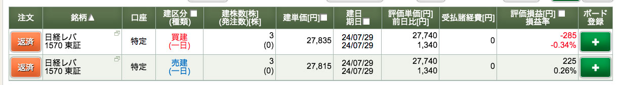 新規と返済が混乱して初日と同じ、買ったのに売っていない(売ったのに買っていない)という両建て?をやってしまいました😅その日のうちに気づけて良かった