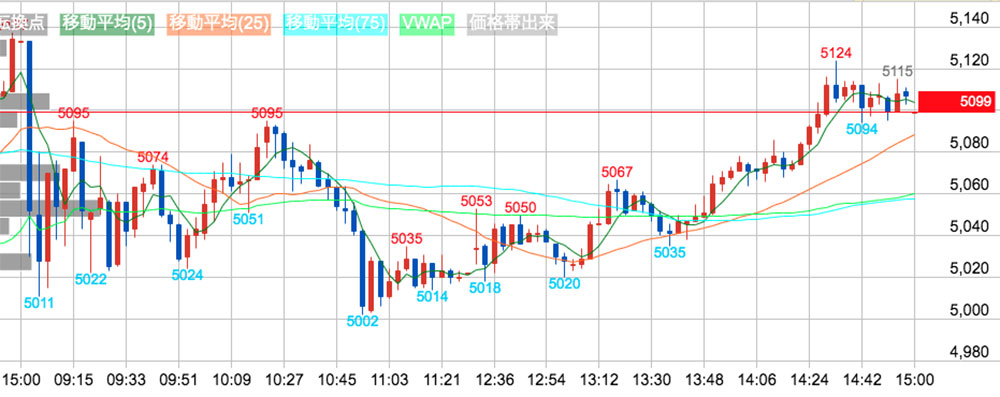 陽線も陰線も両方取れたらどんだけ楽しいことでしょう。なかなか上手くできません。朝から-¥4000スタート。10時半過ぎの下落をショートでコツコツ稼ぎだいぶマイナスを戻すも、後場でやられて結局-¥1800に落ち着きました。