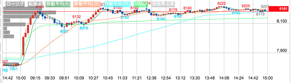 朝一の波に乗ること、5〜7ティックをコツコツ取ること。この2つが上手く合わさると100株でも1万円越えます。もっと読めるようになって、大きく稼ぎたい!当分未来の夢ですが😅